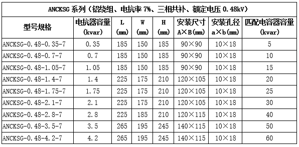 技術要求:適用電容器5kVAR;7%電抗率;銅芯