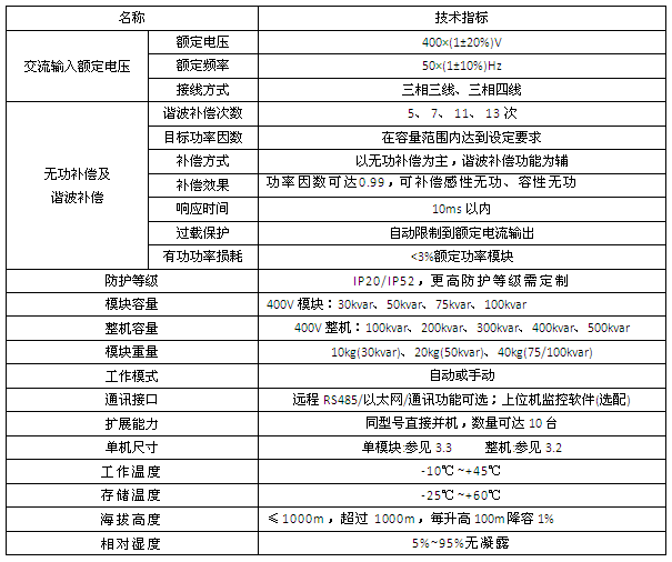 適用于頻率50Hz電壓0.4kV電網的無功功率動態補償。
