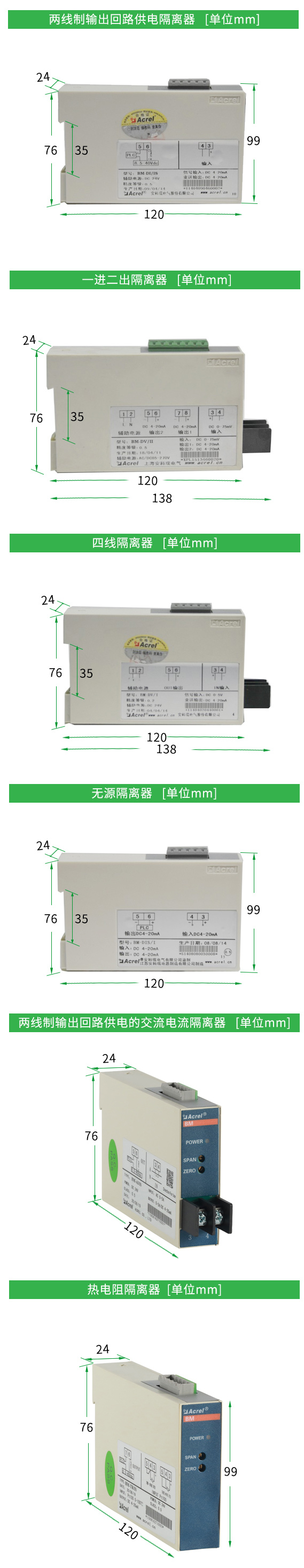 安科瑞BM系列模擬信號隔離器可以對電流、電壓等電量參數或溫度、電阻等非電量參數進行高速精確測量,經隔離轉換成標準的模擬信號輸出。既可直接與指針表、數顯表相接,也可以與自控儀表(如PLC)、各種A/D轉換器以及計算機系統配接。