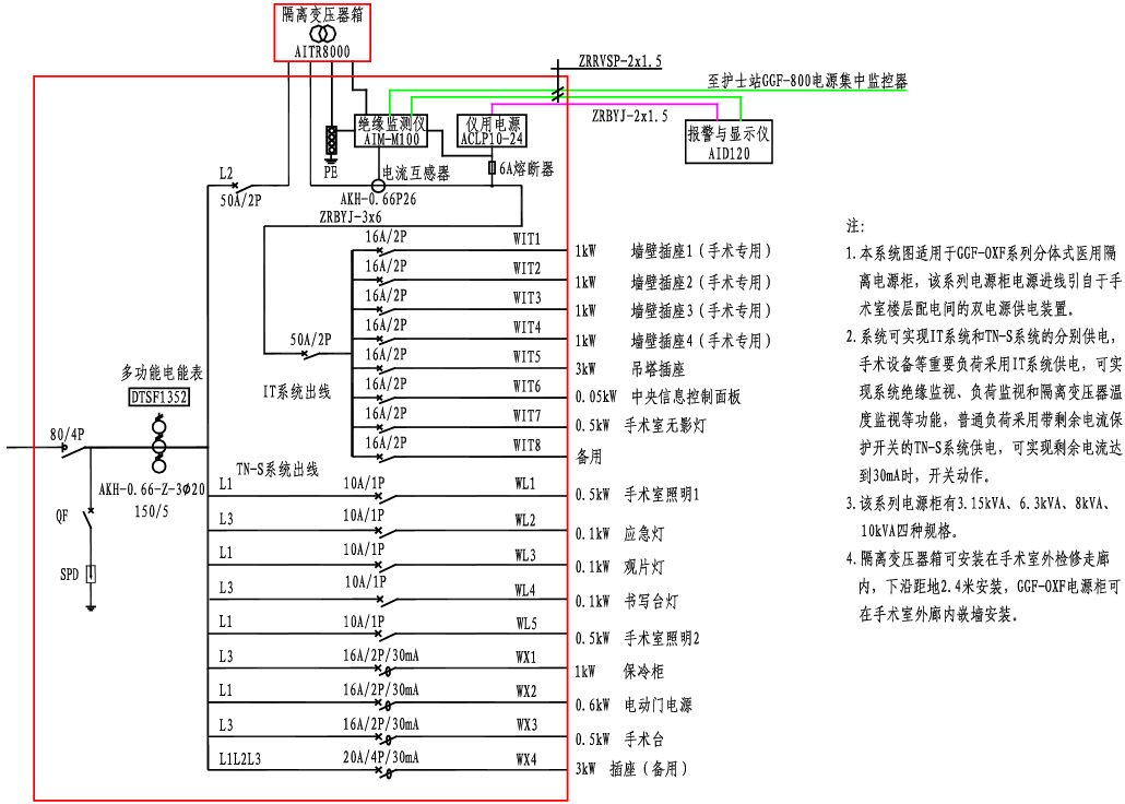 GGF-OXF醫用隔離電源柜系統接線圖